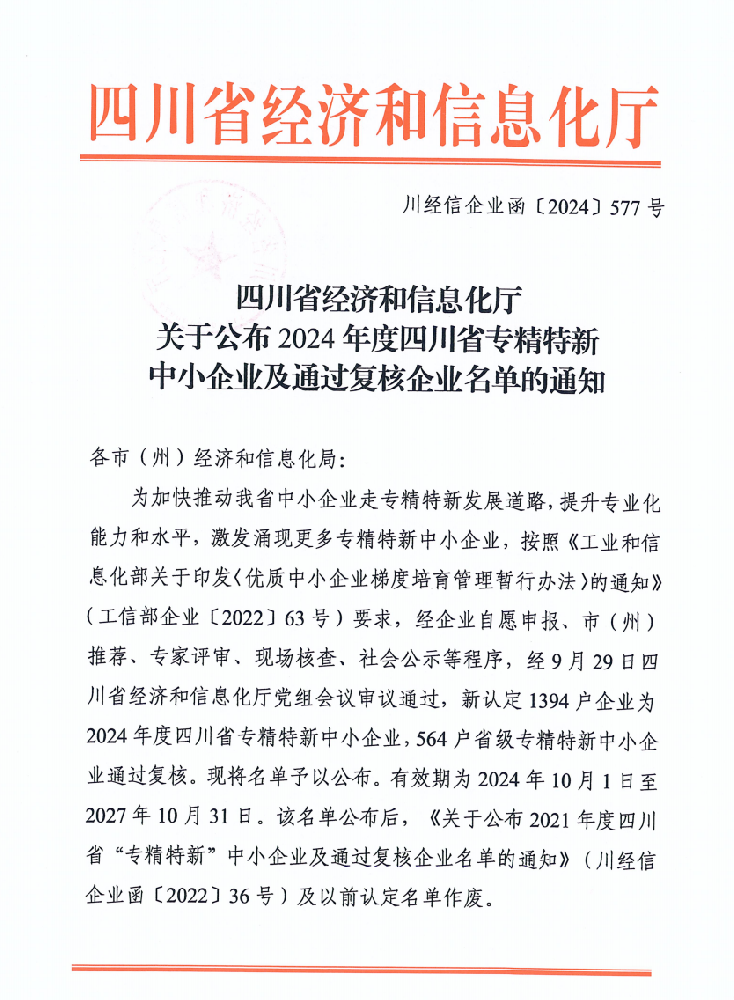 近日,四川省經(jīng)濟(jì)和信息化廳公布了2024年專精特新中小企業(yè)名單,四川艾能捷科技有限公司(Sichuan Energy Technology Co., Ltd.)憑借其卓越的技術(shù)實力和專業(yè)化發(fā)展優(yōu)勢,榮獲四川省“專精特新”中小企業(yè)稱號。這一成就體現(xiàn)了艾能捷(ENERGY)公司在技術(shù)創(chuàng)新和專業(yè)服務(wù)方面的卓越表現(xiàn),也符合“... -